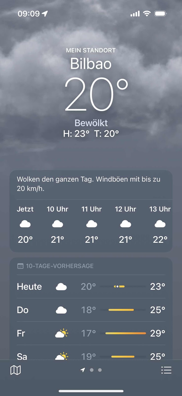 Der Morgen begrüßt mich also mit einer Temperatur von 20°. Als ich zum Bus gehe, hat der Regen aufgehört und es ist frisch. Aber das erscheint mir angenehmer, als die Spitzentemperaturen, die heute in Deutschland erwartet werden.